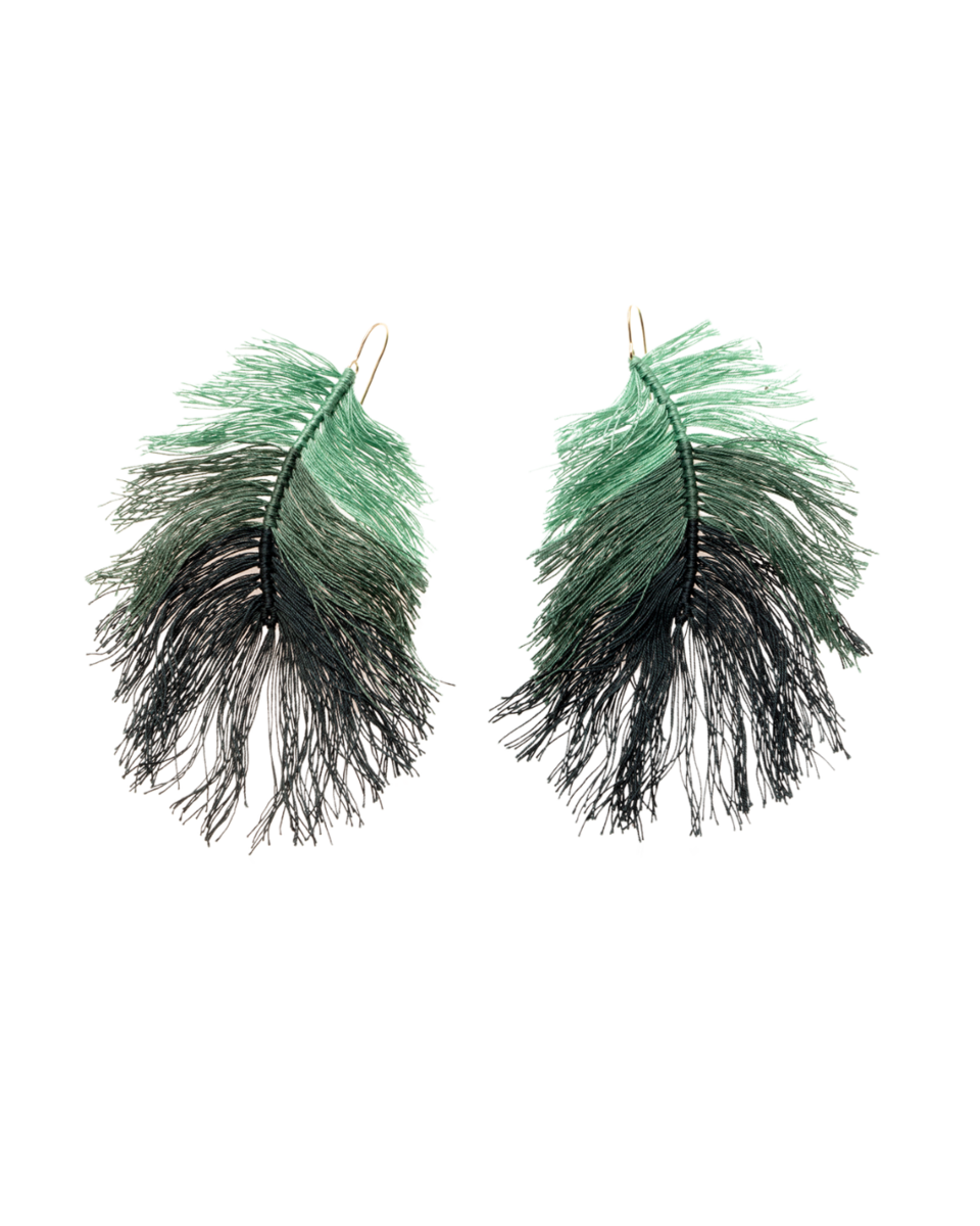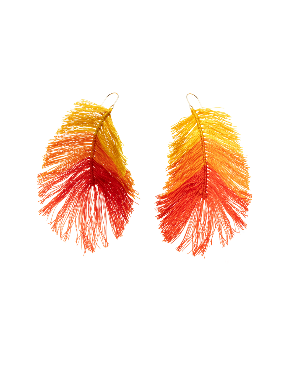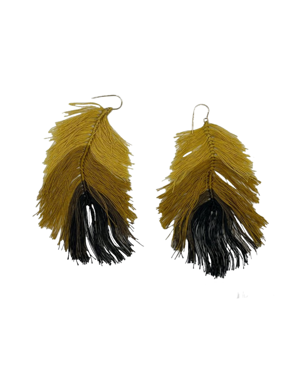 Earring made of 9kt yellow gold and cotton, 8cm long.