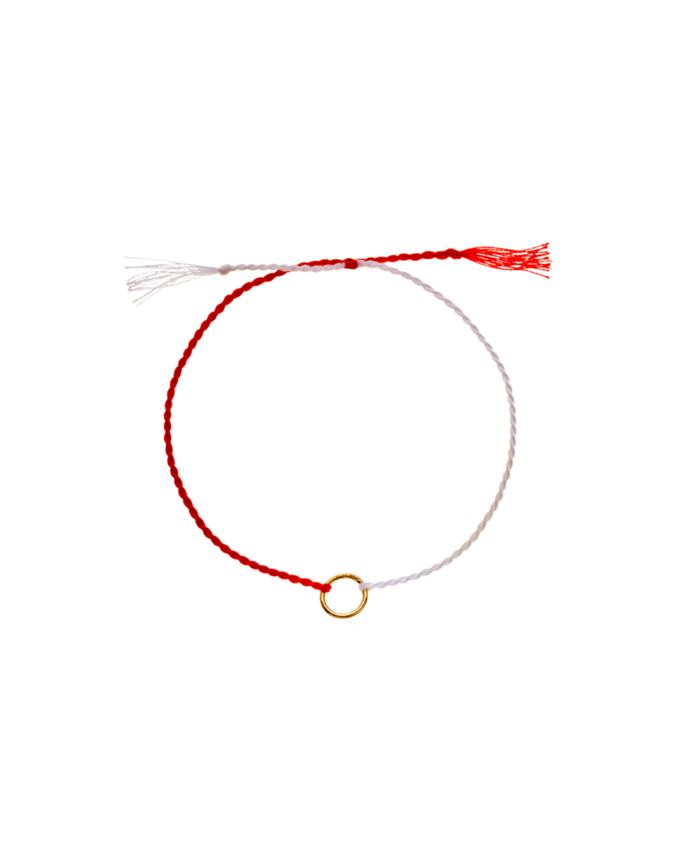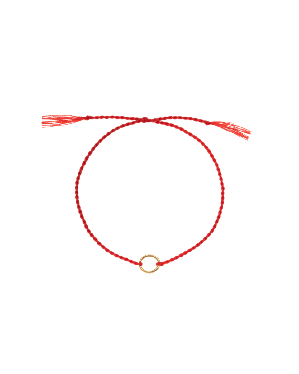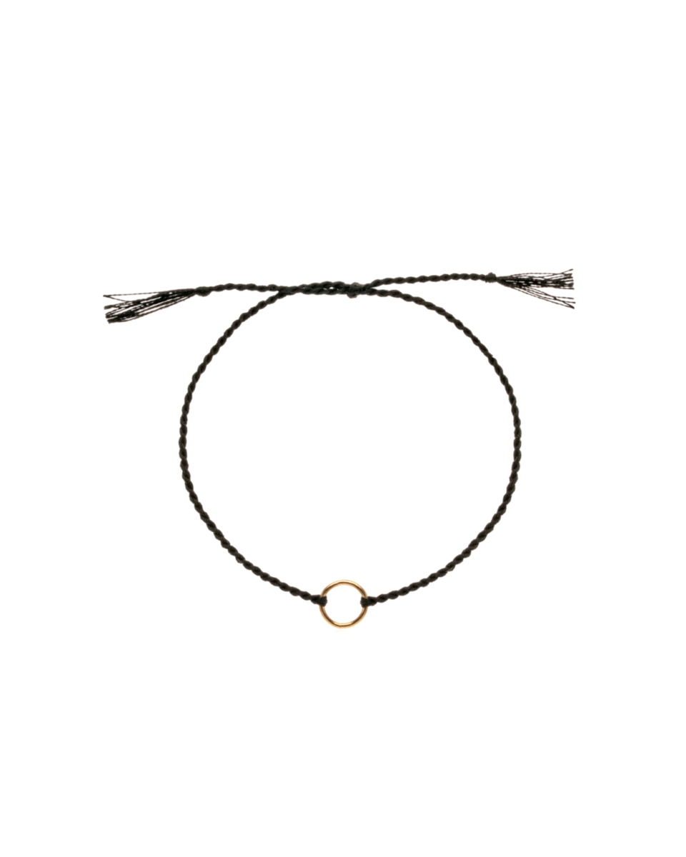 Pick your favourite shade of this colourful bracelet in hand-woven cotton. Decorated with a small circle in 18kt yellow gold. It is available in two sizes: Medium 21cm, Large 24cm fully open. It can be worn by itself or combined with other Atelier VM bracelets.