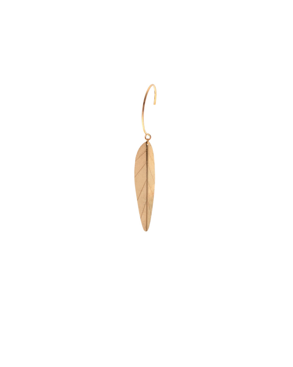 Arborer toute la simplicité de la nature. Boucle d’oreille pendante en or jaune 9 carats en forme de feuille accompagnant tous vos mouvements. Le design minimaliste de cette boucle d’oreille la rend idéale à porter au quotidien. Portez-la seule, ou associez-la à d’autres boucles signées Atelier VM.