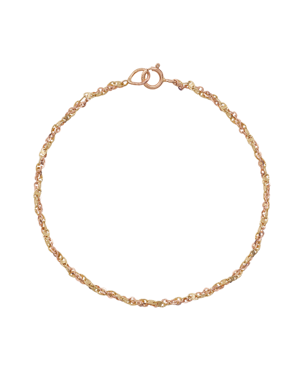 Un hâle lumineux confectionné par des maîtres artisans. L’or jaune et l’or rose 18 carats viennent s’entrelacer pour illuminer les gestes. Portez ce bracelet seul, ou associez-le à d’autres bracelets signés Atelier VM. Ce bracelet est disponible en trois mesures : 16 cm, 17 cm, 18 cm.
