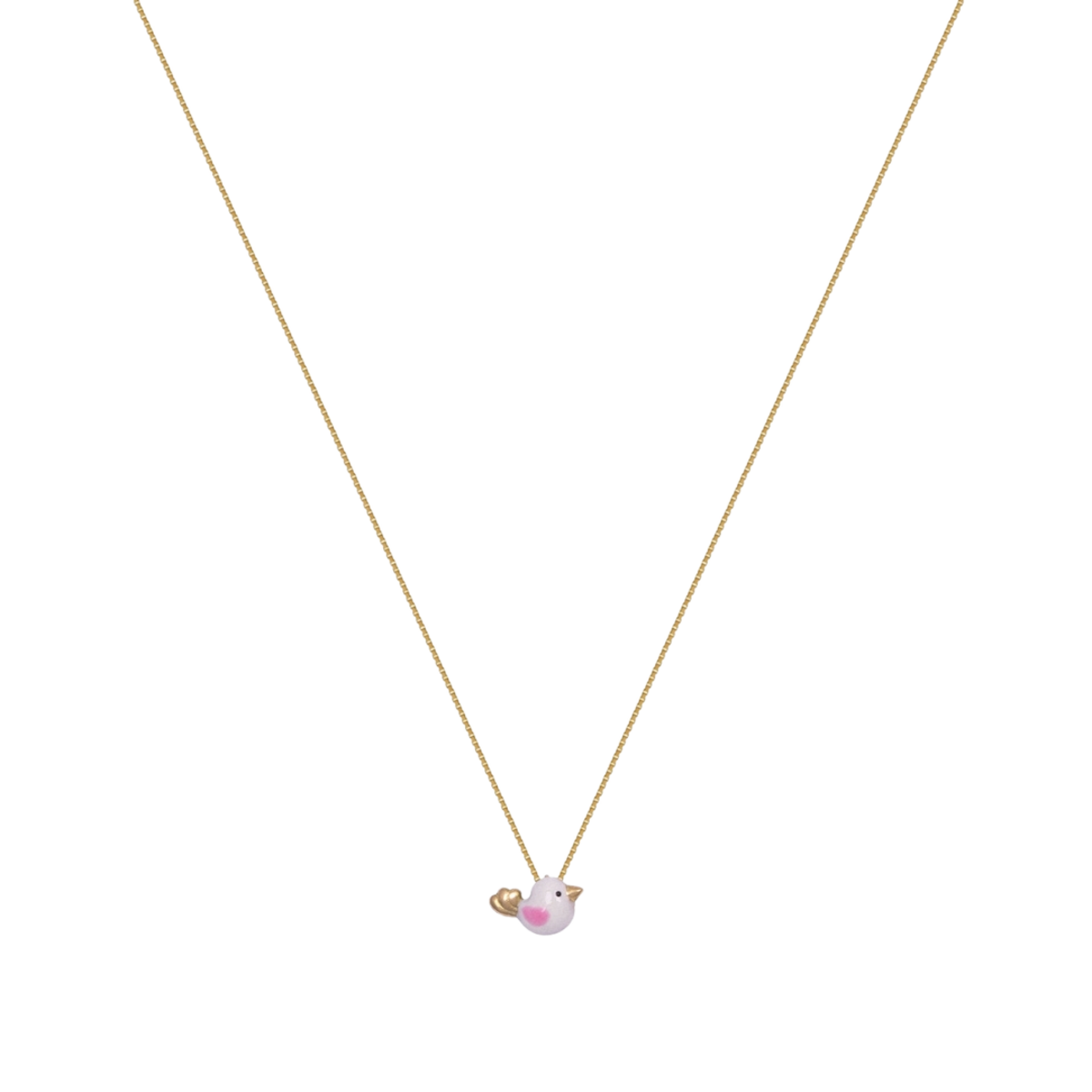 An 18kt gold necklace with a tiny hand-enamelled bird heralding the return of spring and new life. This necklace can be worn by itself or combined with other Atelier VM necklaces.